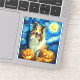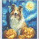 Cute Rough Collie Dog Halloween Jack O Lantern Pumpkin Face Starry Night Van Gogh Style