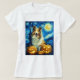 Cute Rough Collie Dog Halloween Jack O Lantern Pumpkin Face Starry Night Van Gogh Style