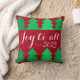 This cute pillow features two rows of assorted green trees and a festive holiday greeting of joy to all with year.
