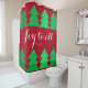 Cute Rows of Green Christmas Trees Joy Red Shower Curtain