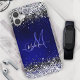 Cute royal blue and silver faux glitter monogram girly case cover. This iPhone case features a sleek, modern gradient of faux glitter that transitions from deep royal blue to sparkling silver. The bold colours and shimmering faux glitter effect create a trendy, girly aesthetic that’s both sophisticated and eye-catching.