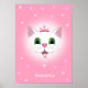 Funny cute royal cat face with hearts on Pink Thank You. Text can be personalised.