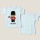 This toddler baby t-shirt features a small smiling teddy bear dressed as a royal guard with a tall black hat and a red jacket, holding a tiny British flag.