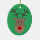 Cute Rudolf the reindeer cartoon Christmas tree Ornament . Personalize with custom text or photo image on the back. Add your greeting or wishes like Merry Christmas or Happy Holidays! Funny Santa's deer cartoon with red nose.
