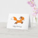 Cute little cartoon fox kit with large ears and bushy tail is running fast.