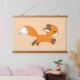 Cute little cartoon fox kit with large ears and bushy tail is running fast.