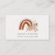 Cute Rust Orange Boho Floral Rainbow Cross Baptism Place Card