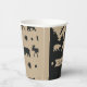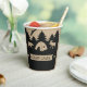 Cute kraft brown and black camping birthday party paper cups. Featuring a tent, a moose, and a bear with a textured kraft brown and black background. Birthday boy or girl's name front and centre - easy to change for your camping party!