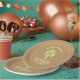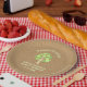 These adorable family reunion paper plates feature an illustration of a green tree made up of circles of various shades of green. The background of the plate is a rustic burlap look pattern. The text is a very pale yellow green. Your family will love these cute and trendy family reunion party plates! Tree graphic by Mygrafico.