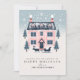 Wish your loved ones a Merry Christmas card design featuring a cute rustic pastel house in a wintery setting. Cover page background provided by Freepik.