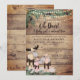A rustic winter Couple Baby Shower invitation featuring a cute deer family with a new baby girl fawn, rustic wood background, string lights and pine boughs. Contact the designer BEFORE ORDERING via Zazzle Chat or makeitaboutyoustore@gmail.com for design modifications or assistance with personalising or transferring the design to another product.
