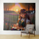 Cute Sad Anime Style Woman in Meadow at Sunset Tapestry