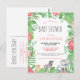 Invite your family and friends to celebrate your baby shower for either a boy or a girl with this charming and sweet jungle safari animal baby shower invitation postcard. This design features baby animals from Africa including an elephant, zebra, and lion. This invitation postcard is surrounded by botanical leafing and pink tropical flowers. The back of this postcard features a fun Books for Baby request with a zebra, an elephant, and a baby lion. Customise the stylish text with the font and colour of your choice or leave this popular typography for your convenience. Other colours and styles are available.