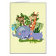 Our Cute Safari Animals design features jungle plants, a giraffe, monkey, elephant, hippopotamus, and alligator! Safari animal design T-shirts, bibs, burp cloths, bathroom sets, pillows, wall clocks, cards, stickers, keepsakes, and more!