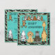 Cute safari animals Baby Shower invitations for boys in turquoise blue and black with whimsical cartoon animals. There is a lovely funny zebra, giraffe, ape, lion and monkey on a pretty blue background with a funky animal stripes pattern Safari text and a cool black and white zebra stripes border. These fun, happy, colourful invites are decorated both sides. Chic, trendy, modern invitations. Please note: All invites on Zazzle have flat printed images. Some elements purchased from Alice at Clipart4resale.com - Text is fully customisable to meet your needs. If you need assistance customising your product please contact me through my store and I will be happy to help.