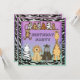 Cute safari animals birthday party invitations for girls and boys with whimsical cartoon animals. There is a lovely funny zebra, giraffe, ape, lion and monkey on a beautiful purple / lilac and blue gradient background with a funky animal stripes pattern Safari text and a cool black and white zebra stripes border. These fun, pretty, classy, colourful invites are decorated both sides. Chic, trendy, modern invitations. Please note: All invites on Zazzle have flat printed images. Some elements purchased from Alice at Clipart4resale - Text is fully customisable to meet your needs. If you need assistance customising your product please contact me through my store and I will be happy to help.