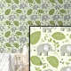 Cute Safari Animals Grey Elephants Leaf on Green Wallpaper