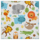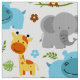 Cute jungle animal nursery fabric featuring little giraffes, elephants, alligator, hippopotamus , monkeys , sloth, owl, on branches. Perfect for nursery decor and other baby related projects.