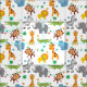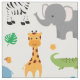 Cute jungle animal nursery fabric featuring little giraffes, elephants, alligator, hippopotamus , zebra, and monkeys on branches. Perfect for nursery decor and other baby related projects.