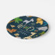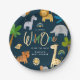 A little Wild One is on the Way! Modern baby shower paper plates. Design features cute safari jungle animal illustrations on a trendy navy blue background. Personalise by adding name.