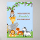 Cute Safari Jungle Animals Birthday Party Banner Poster