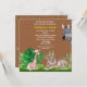 Safari Jungle Zoo Themed Baby Shower invitation with cute lion and giraffe lying down and a zebra to the side. Brown background gives it a rustic look. Great baby shower invitation for baby boys or girls.