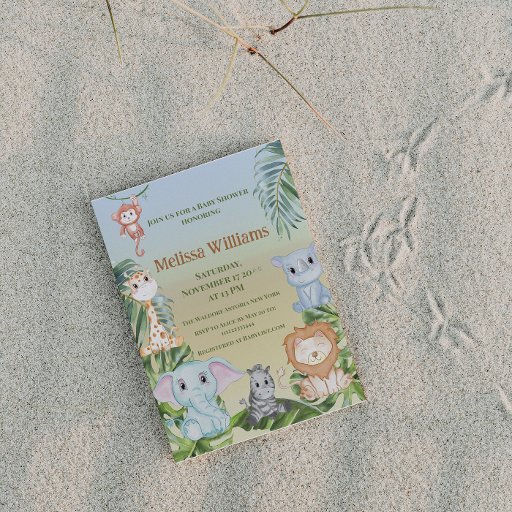 Cute Safari Jungle Little Animals Baby Shower Invitation