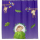 A shower curtain with cute little monkeys swinging from trees and one is peeking out from behind a bush. Cute and whimsical safari design. Set on a purple gradient background.