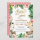 Cute Safari Pink Floral Greenery Baby Girl Shower Invitation