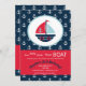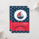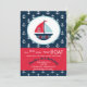 Amidst a navy blue background is "a sea of anchors" and a decal with a cute little sailboat. A wide, red band holds your party details. A nautical-theme invitations perfect for juvenile birthday parties or baby showers. (<a href='http://www.freepik.com/free-vector/birthday-card-with-nautical-elements_886557.htm'>Designed by Freepik</a>). <br/><br/>The card is easy to customise with your wording, font, font colour, paper shape options and choice of six paper types.<br/><br/>Not exactly what you're looking for? All our products can be custom designed to meet your needs at no extra charge.<br/><br/>Simply contact us at heartfelthelper@gmail.com.<br/><br/>Coordinating products available: Just ask us!