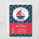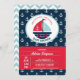 Amidst a navy blue background is "a sea of anchors" and a decal with a cute little sailboat. A wide, red band holds your party details. A nautical-theme invitations perfect for juvenile birthday parties or baby showers. (<a href='http://www.freepik.com/free-vector/birthday-card-with-nautical-elements_886557.htm'>Designed by Freepik</a>). <br/><br/>The card is easy to customise with your wording, font, font colour, paper shape options and choice of six paper types.<br/><br/>Not exactly what you're looking for? All our products can be custom designed to meet your needs at no extra charge.<br/><br/>Simply contact us at heartfelthelper@gmail.com.<br/><br/>Coordinating products available: Just ask us!