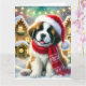 A dreamy Christmas scene with an adorable Saint Bernard puppy in an enchanting snowy Christmas village.