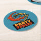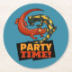 Cute salamanders on paper coasters for a party. Use "Personalize this template" to tweak the "PARTY TIME!" text and create a unique customized gift. My original and colorful artwork featuring funny red and fire salamanders sitting on a blue background.
