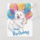 Cute Samoyed with birthday balloons wishes Happy Birthday