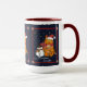 Are you looking for a cute Christmas gift? Perhaps this mug is the one you like to buy. Is is showing a vector illustration with a Santa cat (eating is fish burger) and his little friends the Snowman.and the robin. Around is a snowy, starry dark blue night. The text with the name is a template object. It is possible to change or remove the text, The font size, font colour and / or font type can be changed too.