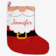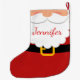 This fun Christmas stocking combines classic holiday charm with a playful twist, and features a plush, snow-white depiction of Santa's iconic beard cascading down from the top, with your name highlighted in the middle. His black belt with a shiny golden buckle wraps around the middle, capturing the essence of Santa's timeless outfit. Perfect for hanging by the fireplace or gifting to loved ones, this stocking is a joyful reminder of the magic and warmth of the holiday season.