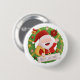 A Christmas button with a doodle illustration of a cute and jolly Santa Claus with a sack full of presents! Around him is a Christmas wreath that is decorated with Christmas classics such as star, bells and ribbon, ornaments, Christmas flower, mistletoe and candy cane! Personalise your Christmas greeting in the space provided!
