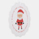 Send festive holiday cheer with a delightful Christmas keepsake your friends and family will cherish for years to come. This paper ornament card features a cute cartoon Santa Claus, bringing a playful and joyful touch to your holiday greetings. Customise the front with your own message and family name in red lettering that borders the design. The back of the Santa Claus ornament card displays your favourite family photo, making it a fun and heartwarming way to celebrate the season.
