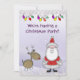 Beautiful festive Christmas party invites for family, adults and children with a cute and adorable happy Santa and the red nosed reindeer with a lovely digital shiny jewels effect on a snowy scene backdrop with pretty, colourful jewel texture Christmas lights and a lovely snow and snowflakes border. Fun, colourful and cheerful Christmas party invitations suitable for anyone - kids of all ages will love these cute characters. These happy Christmas invites are decorated on both sides and all text is fully customisable. Some elements in this design were purchased from the Scrappin Cop. PLEASE NOTE: All elements are printed - NOT REAL JEWELS - this is a printed image. If you need assistance customising your product please contact me through my store and I will be happy to help.