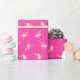 This festive design has a polka dot pattern of pale pink tropical flamingos, all wearing Santa hats, on a trendy, hot pink.