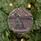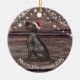 This ceramic Christmas ornament has a cute Labrador wearing a red Santa hat , wood and lights background and a message from the Labrador the back. This ornament is perfect for your tree or to give as a gift.