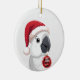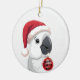 Cute Santa Hat Parrot Red & White Christmas Ceramic Ornament.