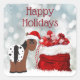 This Happy Holidays Christmas sticker design features a cute Blanket Appaloosa Horse wearing a Santa Hat standing with a huge bag of gifts in the snow. Text can be modified to read as you wish. -