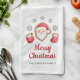 Personalised Family Cute Santa Merry Christmas kitchen towel.