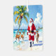 Cute Santa on Beach with Reindeer Personalized Metal Tree Decoration