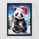 Elegant illustration Christmas holiday design featuring a cute Santa panda on a snowy mountain background.