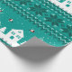 What better way to show your holiday spirit than with wrapping paper that features Santa in a tree and a teal sweater pattern background? Your gifts will be the talk of the town as you spread joy and cheer with this adorable wrapping paper.