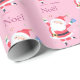 Cute Santa Personalise Name Pink Wrapping Paper