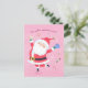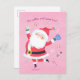 Against a soft pink background, Santa dances with joy surrounded by festive goodies of the season.