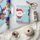 Santa and a reindeer stand by a farm tractor on this snowy Christmas wrapping paper. The message and name are easily personalised.